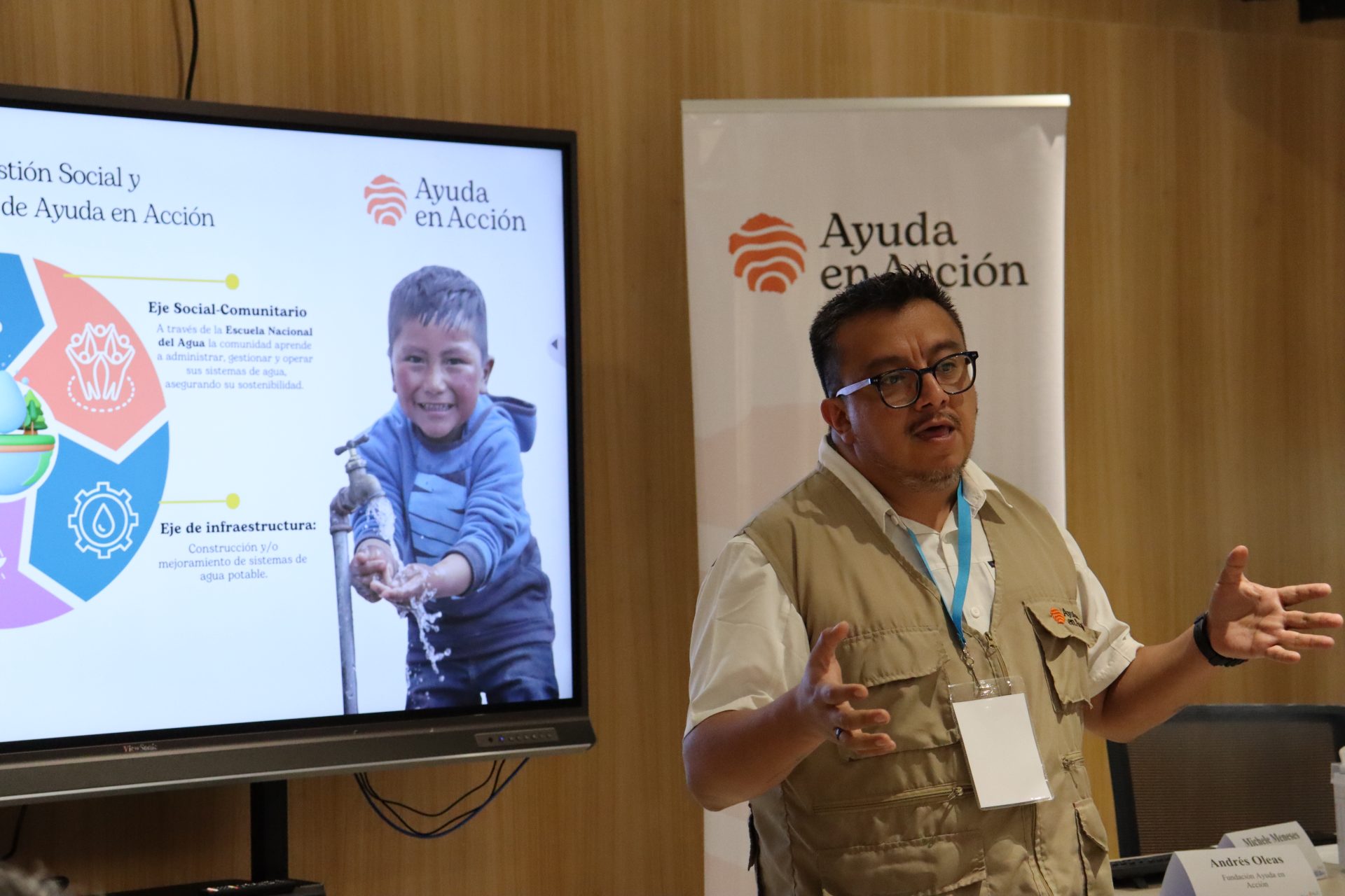 Por su parte, Andrés Oleas, Coordinador de Gestión Social y Ambiental del Agua, lideró el taller “Cómo elaborar tu proyecto de agua para la DCI”, donde presentó el modelo de gestión social y ambiental del agua desarrollado por nuestra organización. Durante su intervención, compartió herramientas y pasos prácticos para estructurar proyectos de desarrollo sostenible que integren la viabilidad técnica, la gestión comunitaria, ambiental y financiera. Oleas destacó que la falta de acceso a agua segura y saneamiento es una de las principales causas de la desnutrición crónica infantil en Ecuador y subrayó la importancia de fortalecer a las juntas administradoras de agua potable (JAAPs), promover la participación de mujeres y jóvenes en roles de liderazgo y proteger los ecosistemas hídricos como pilares de sostenibilidad y resiliencia frente al cambio climático.